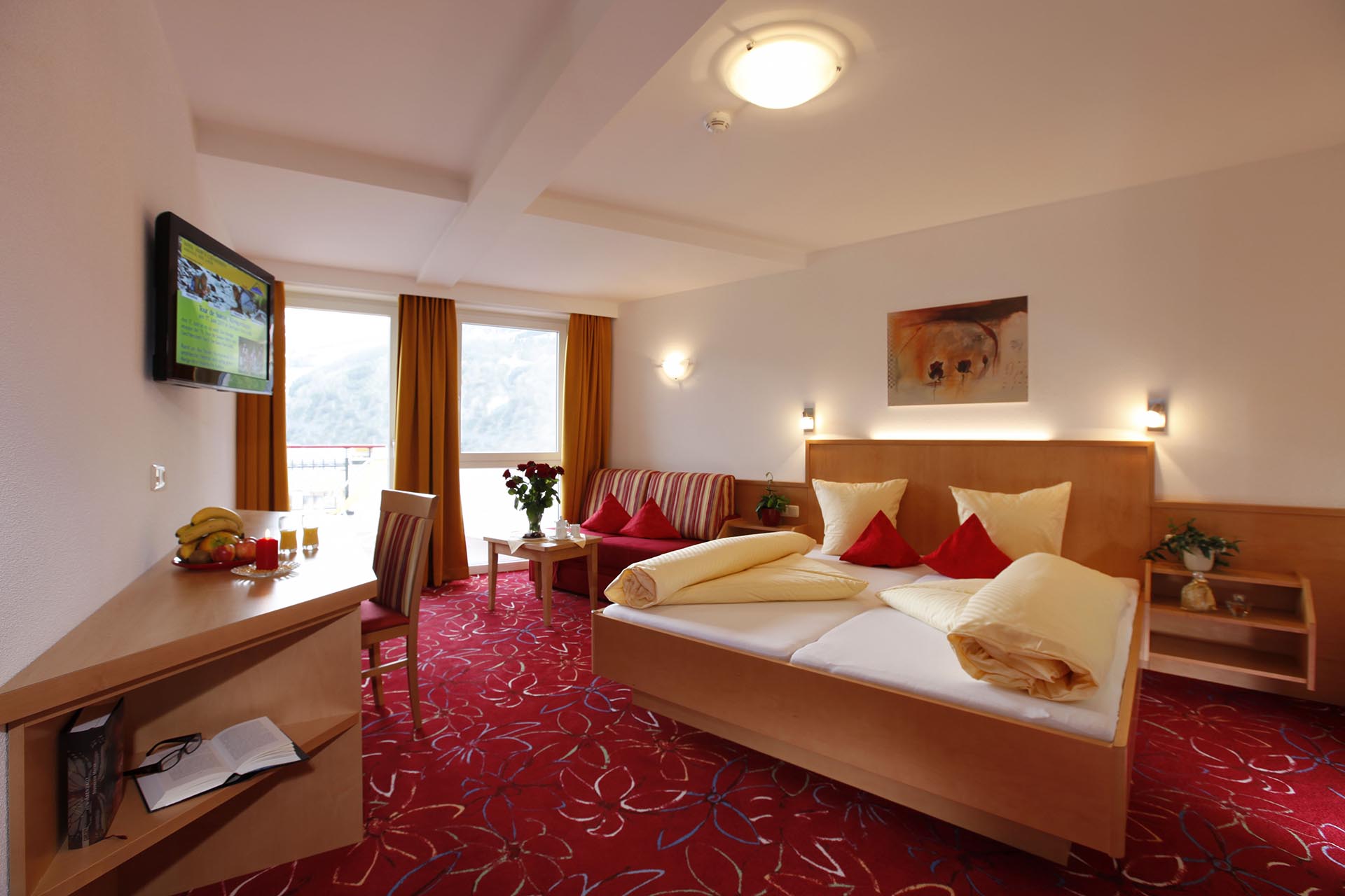 5-Gänge-Menü und lassen den Tag entspannt an unserer Self-Service-Bar ausklingen. Für Erholung von Körper, Geist und Seele sorgt unser großzügiger AlpenSpa mit Saunen, Dampfbad und Infrarotkabine sowie der 11-Meter-Indoorpool AlpenQuell mit Relaxoase.