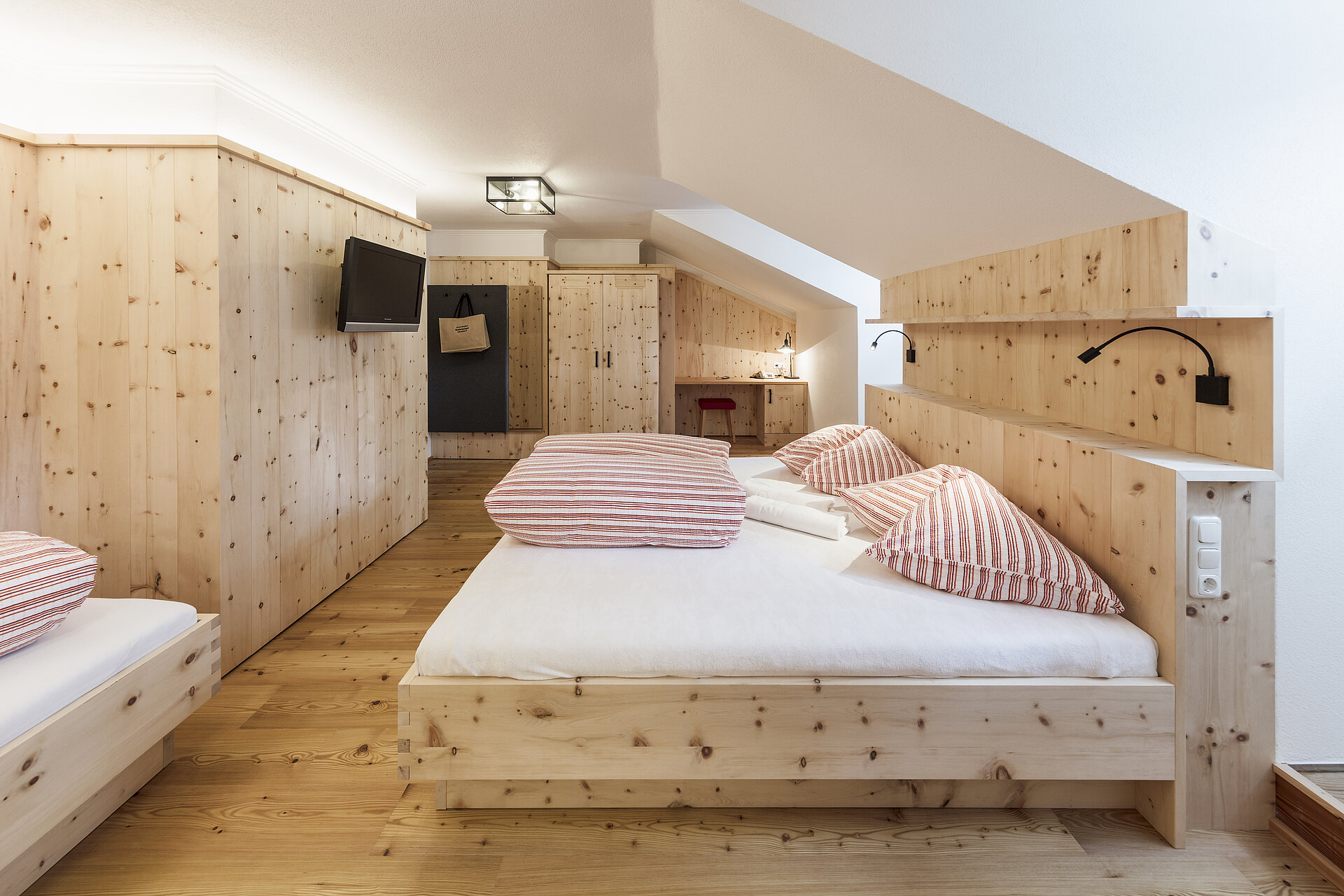 Die Zimmer im historischen Wirtshaus verzaubern durch eine besonders heimelige Atmosphäre. Die neuen Zimmer & Suiten sind mit viel hellem Holz und ideal dazu passender Möblierung ausgestattet